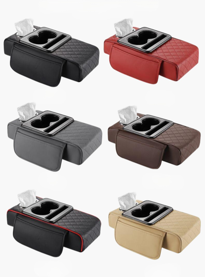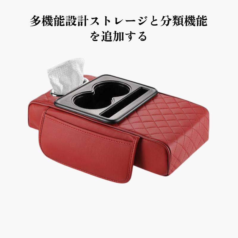 4 in 1アームレストボックスは収納力、USB充電、カップホルダー、肘掛け機能を備え、車内を快適に整理できます。